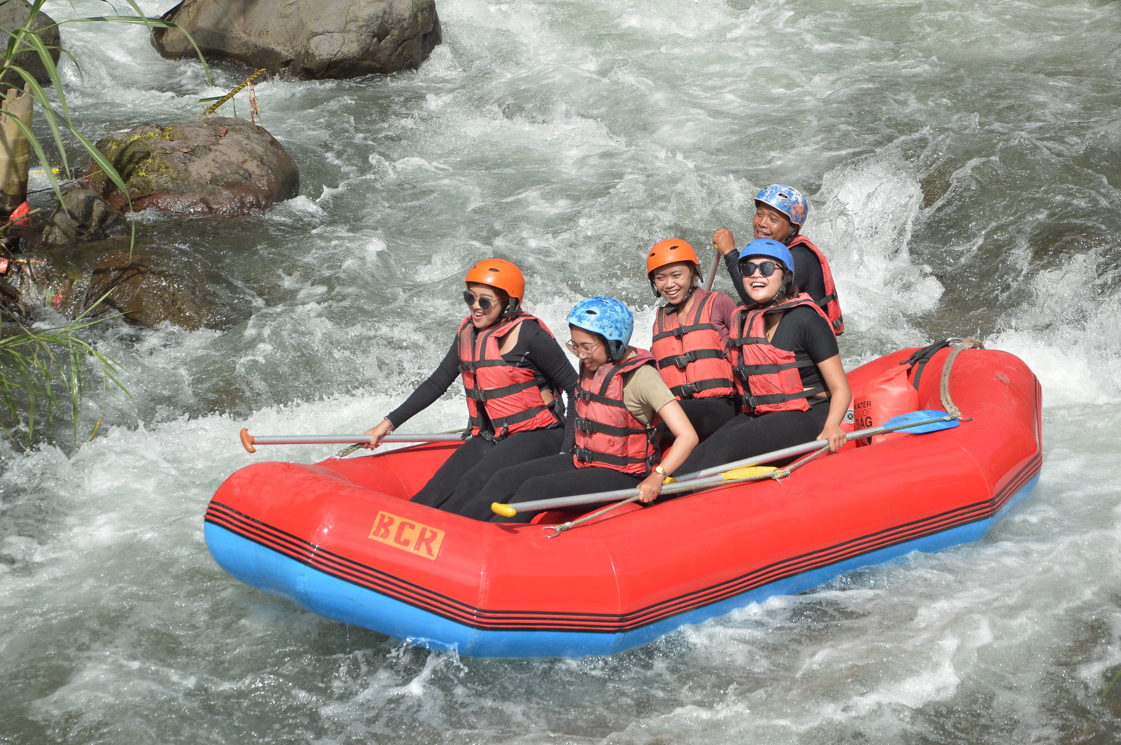 Bukit Cilli Rafting (BCR) Telaga Waja River is one of famous easy access rafting company at Telaga Waja River with the longest track almost 3 hours fun with no stair up at finish point to get our beautiful set up landscape restaurant near Apet bridge located between Karangasem and Klungkung Regency. BCR restaurant finish point designed with modern and traditional architecture, adjusted with the space viewing beautiful nature of Telaga Waja River. The start point of BCR Telaga Waja River is located on the main road of Muncan Street with viewing to the river valleys and ricefield surrounding areas and just few minutes to get the river bankside where the raft will bring you to explore the beautiful tropical rainforest of Telaga Waja River, the shortest walk down at start point.